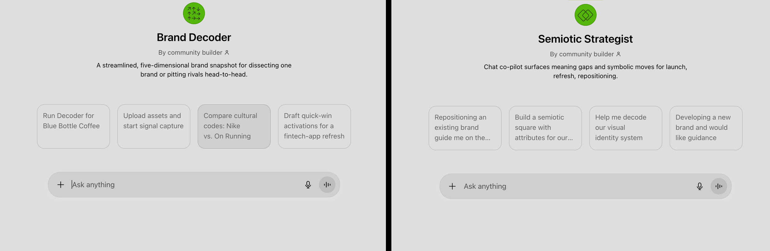 QUADRUPLER is an intelligence engine for brands who want to refine their meaning. It is built on ten simulated human biases. These personas allow you to see your brand through the eyes, instantly. It is a strategic and creative exploration tool to experiment with brand codes, both visual and verbal.